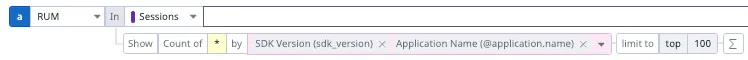RUM query to list the SDK versions